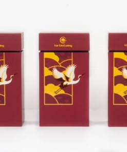 - Hạc được in trên hộp trà, phía sau là hoạ tiết mây, núi, đồng xu. Hoa văn mang đậm văn hoá Việt Nam để làm nền cho cánh hạc vươn ra, tượng trưng cho sự thịnh vượng, mạnh mẽ, quyền quý của người được nhận.